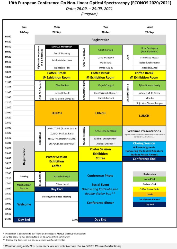 Schedule for the ECONOS 2020/2021